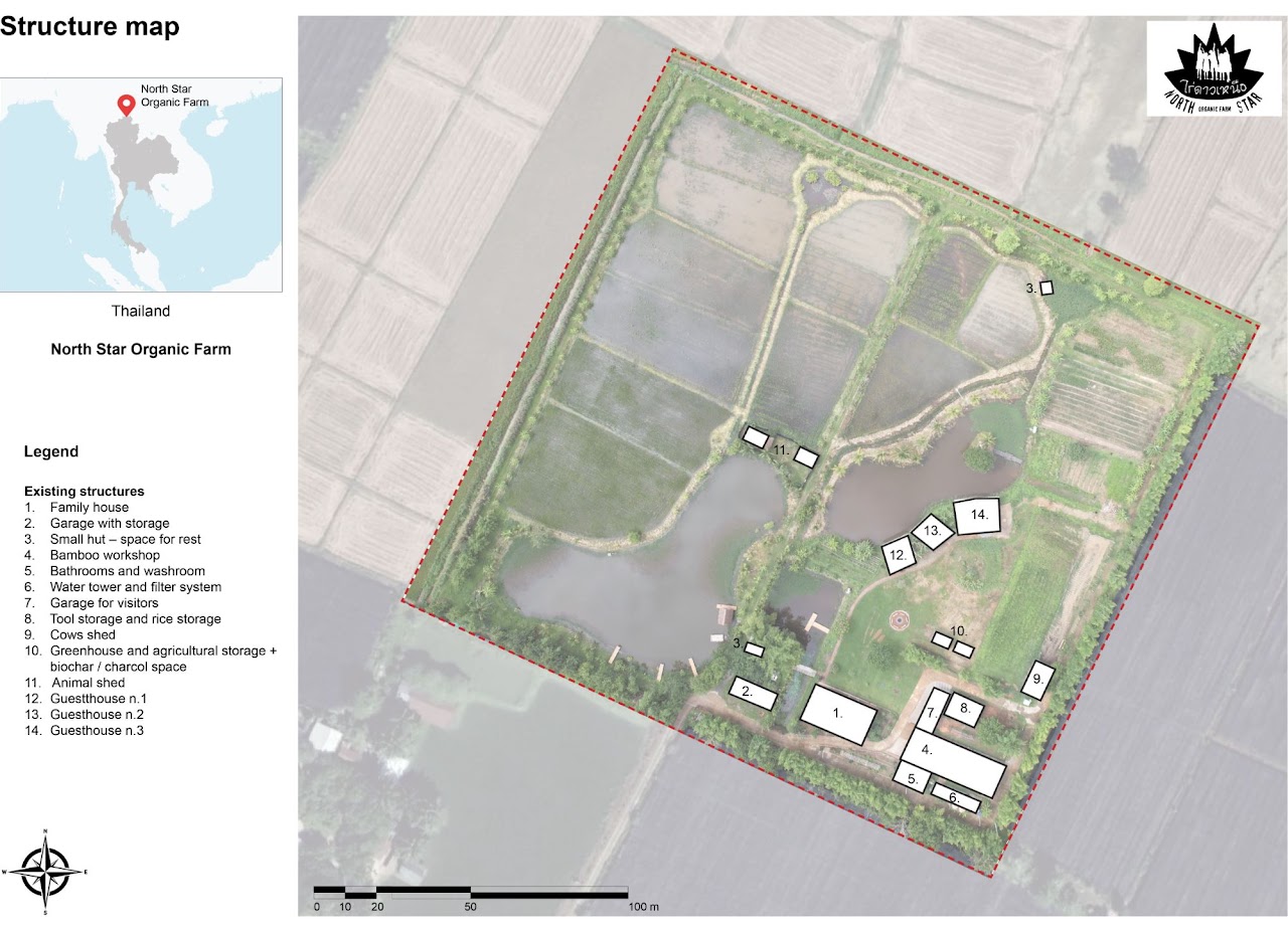 The North Star Café and Farmstay is a social enterprise run by the NGO “BAAN DOI – Home and Healing Center for Children (baandoi.org). It is located at the North Star Organic Farm and has been build up in cooperation with the project BASEhabitat, architecture for change, University of Arts Linz, Austria (basehabitat.org) and our permaculture teacher Mr. Sandot Sukkaew from Sahainan permaculture farm, Nan, Northern Thailand (sahainan.org).