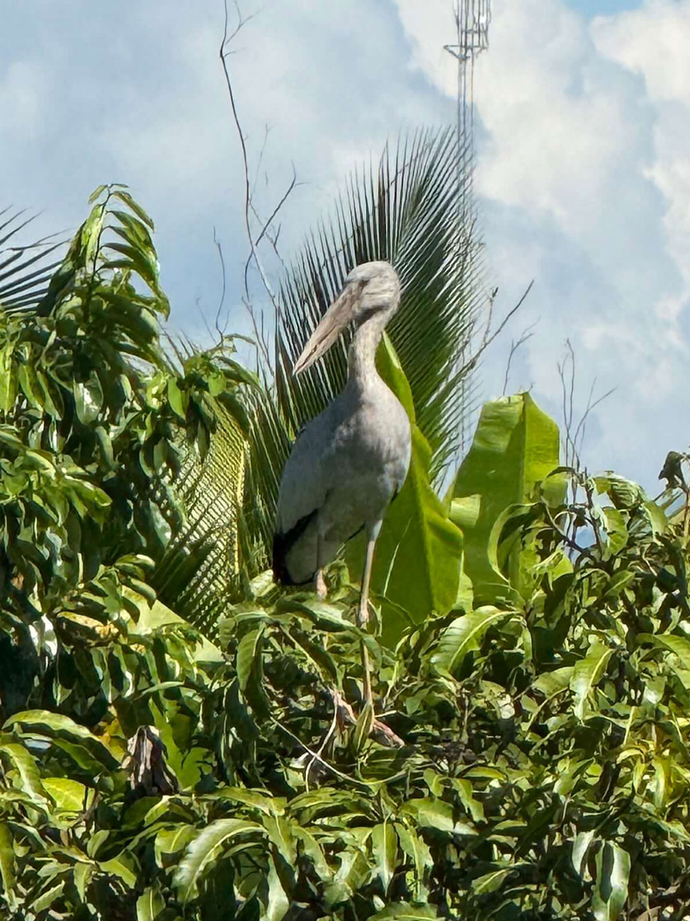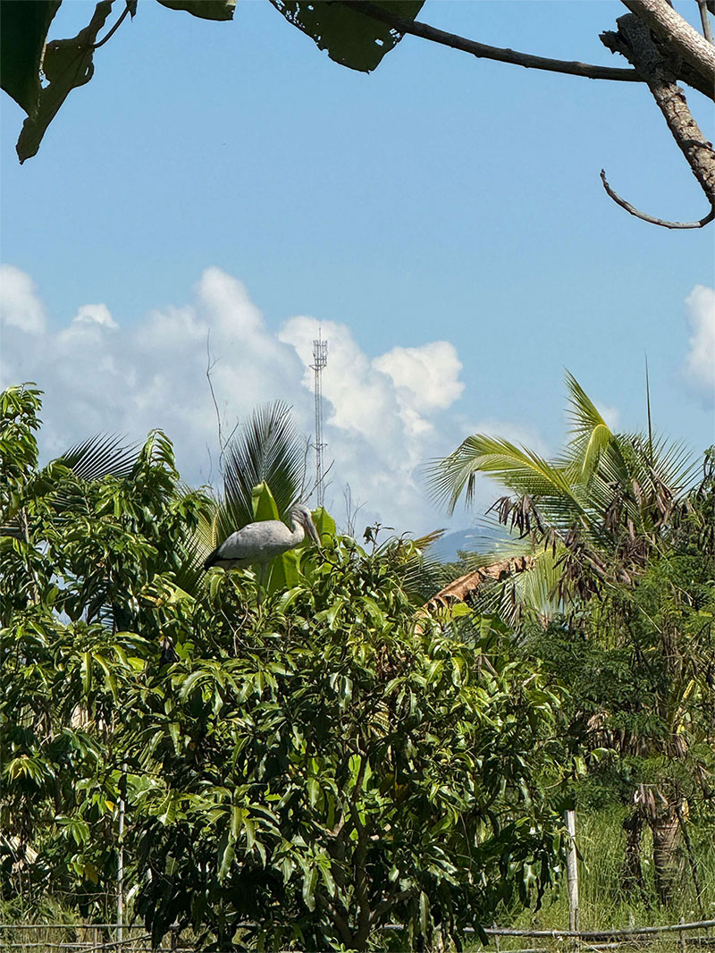 นกปากห่างเอเชียเป็นนกขนาดใหญ่ที่มักบินโฉบเหนือฟาร์มของเรา ขนของมันมักเป็นสีเทาในฤดูปกติและเป็นสีขาวในฤดูผสมพันธุ์ พร้อมปีกสีดำมันวาวและหางสีดำหรือม่วง ขาของมันสั้นกว่านกกระสาอื่น ๆ และใช้ปีกกว้างโผบินโดยอาศัยกระแสลมอุ่น นกชนิดนี้ชอบอยูใกล้แหล่งน้ำ และนาข้าวของเราก็เหมาะสำหรับการหาอาหาร ทั้งหอย ปลา งูน้ำ ปู กบ และแมลงขนาดใหญ่ บางครั้งคุณอาจเห็นมันลุยน้ำเพื่อตวัดจับเหยื่ออย่างรวดเร็ว หรือบางครั้งอาจเห็นมันบินวนอยู่เหนือพื้นที่ก่อนจะโฉบลงไปจับเหยื่อ นอกจากนี้ยังมีเสียงร้องที่ดังและจดจำได้ง่าย และหากตกอยู่ในอันตราย มันจะบินหนีอย่างรวดเร็ว.